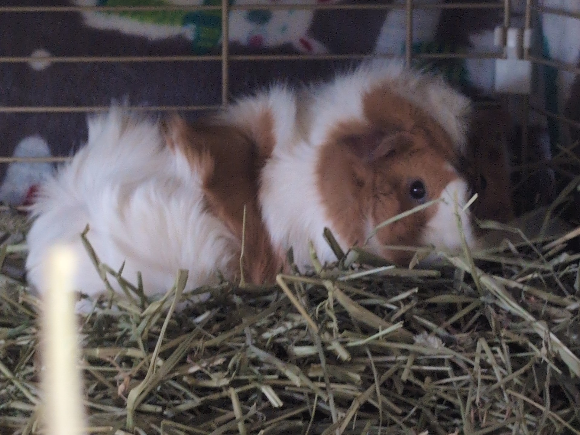 When we got Mai and Ty Lee they had never had hay and would not eat it when offered, they also would not eat pellets. They were only being given an unknown foraging blend of pellets and like with most foraging blends they picked out the dried fruit that is terrible for them and left the rest. They were in very poor shape health wise, very picky eaters when it came to fresh veggies, and they hated being handled to the point they were endangering themselves trying to jump out of our hands. After we had a brief quarantine, they learned to eat hay from Vanya and Klaus, and were also taught to be far less picky eaters by Klaus eating anything that would fit in his mouth (often times even if it was already in their mouth). We also acclimated them to handling so they both now at least tolerate being picked up and accept their fate and stop squirming once they have been. They are now quite happy and healthy adult sows.